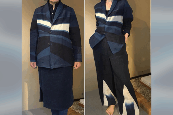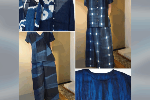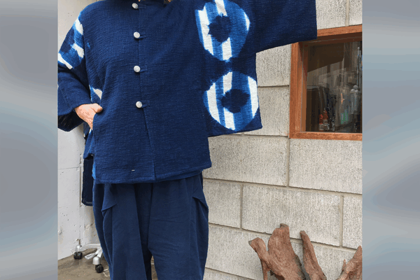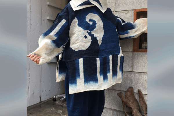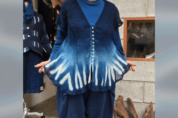 「藍」は親しみやすい素材ですが、私たちが手掛けている個性的で他にない技法が「藍」によりさらに引き立ちます。 既にお持ちの衣装とコーディネートしやすくなります。 カジュアルでもフォーマルな場面でも自然に振舞えます。